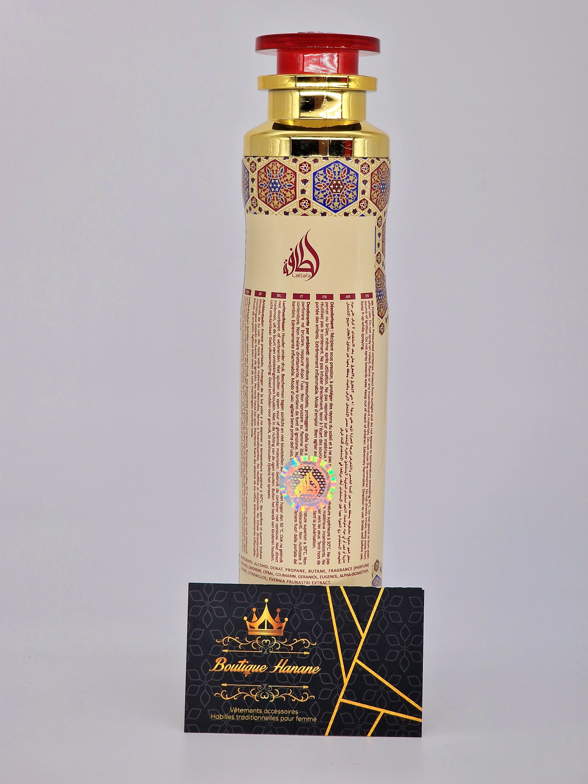 Transformez votre espace avec ce spray d'ambiance alliant des notes sucrées de sucre, un cœur d’encens mystérieux, et une base chaleureuse de vanille, oud, musk et bois de santal pour une atmosphère apaisante.