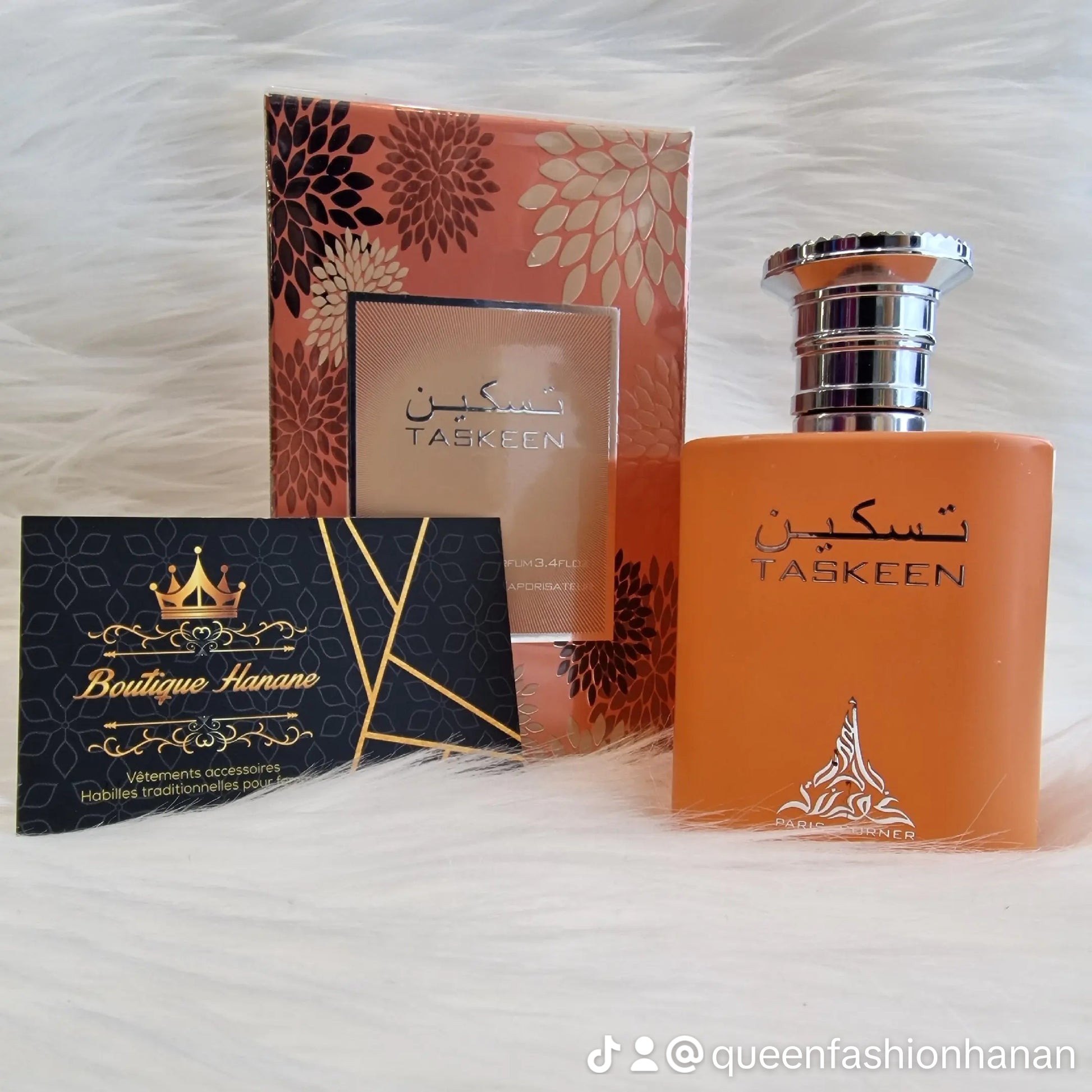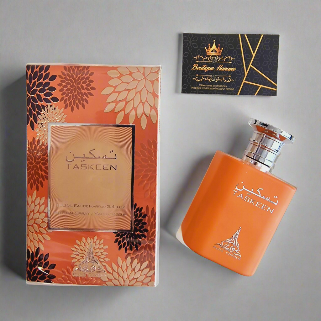 A captivating fragrance that begins with a luminous burst of juicy Peach, zesty Blood Orange, and spicy Cardamom. As it develops, a refined heart of floral Heliotrope, rich Cognac, and elegant Jasmine emerges, adding depth and sophistication. The base is a comforting blend of warm Sandalwood, creamy Vanilla, and sweet Tonka Bean, with earthy undertones of Patchouli and Labdanum. Taskeen envelops its wearer in a luxurious, long-lasting embrace of fruit, spice, and woods, perfect for those who appreciate a balanced and unforgettable scent.